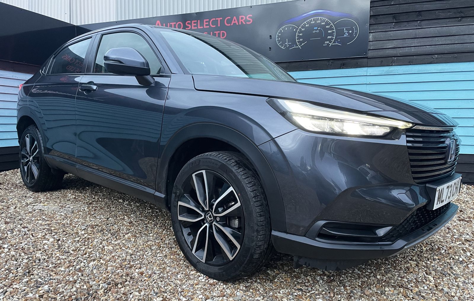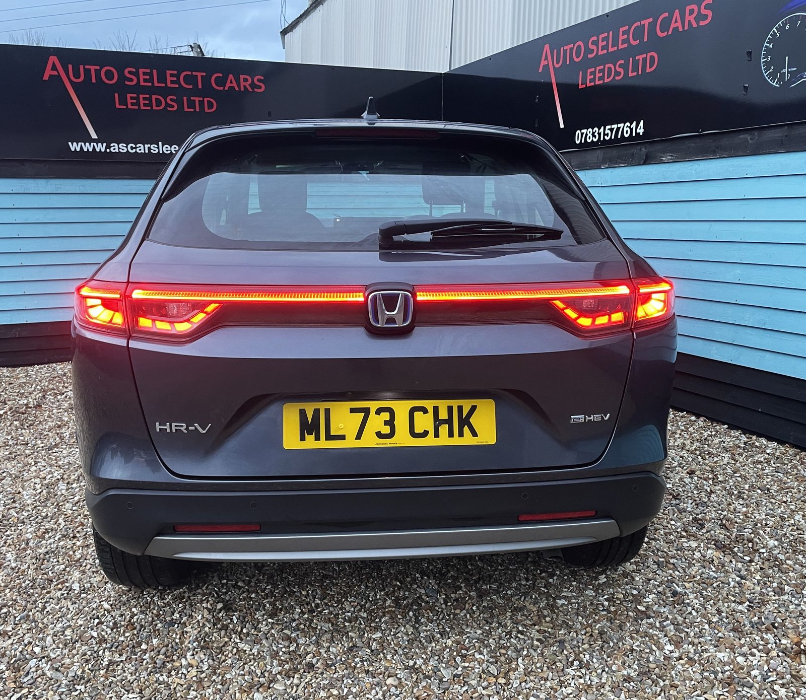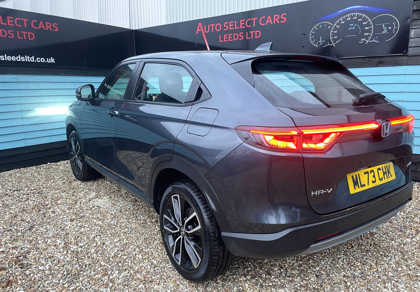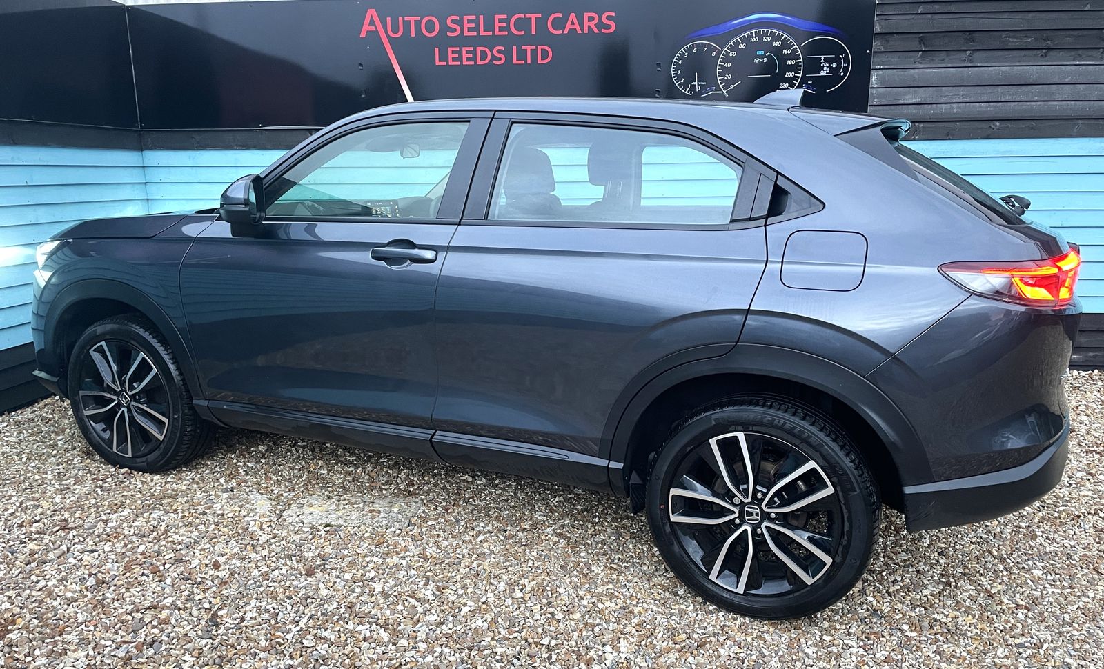 Honda HRV Elegance, I-MMD, 1.5 e;hev, CVT Automatic, 5 door, hybrid petrol electric, 131ps, s/s, EURO 6, in Meteoroid Grey metallic with black cloth magic heated seats, Honda connect with satellite navigation and multi info display, front and rear park distance control with reverse camera, multifunction steering wheel with paddle shift option, on board computer, cruise control with speed limiter and voice recognition blue tooth hands free phone system, 18" black cut alloy wheels on premium matching tyres with locking wheel key, driving mode options from sport, normal, Eco oR EV, Auto Led headlamps with coner assist, high beam assist and LED day time running lamps. ABS, brake assist with collision mitigation braking system, forward collision warning, hill decent control, hill hold handbrake assist, lane keep assist, traffic sign recognition, vehicle stability assist. DAB radio with usb and Apple car play wireless, Auto climate control, electric windows with electric heated power folding wing mirrors, front and rear mats with boot area protection mat. This is a one owner car with full Honda service history last serviced December 2025 and comes with the extended 5 year service plan to 2028 and the remainder of the manufacturers warranty.