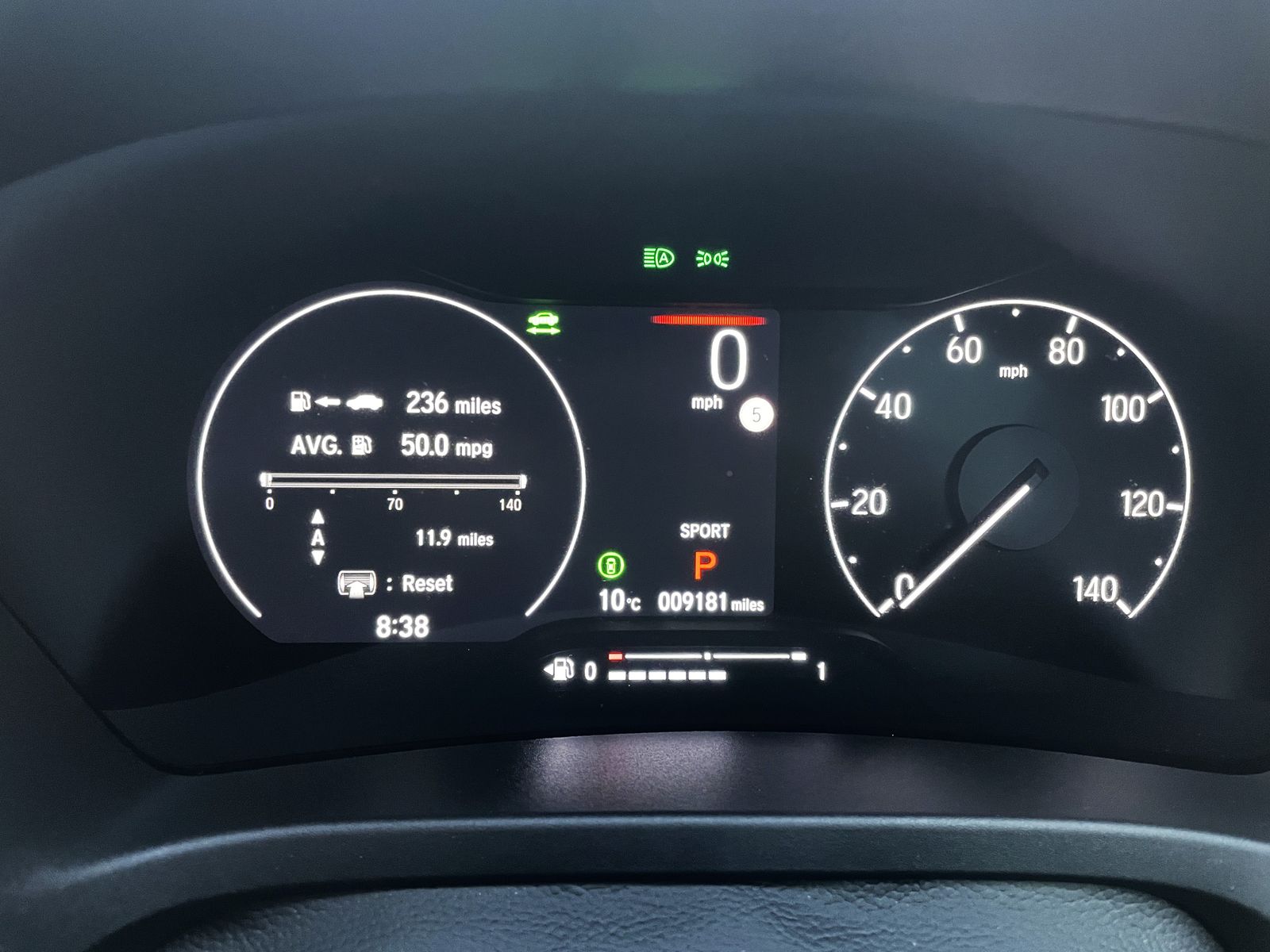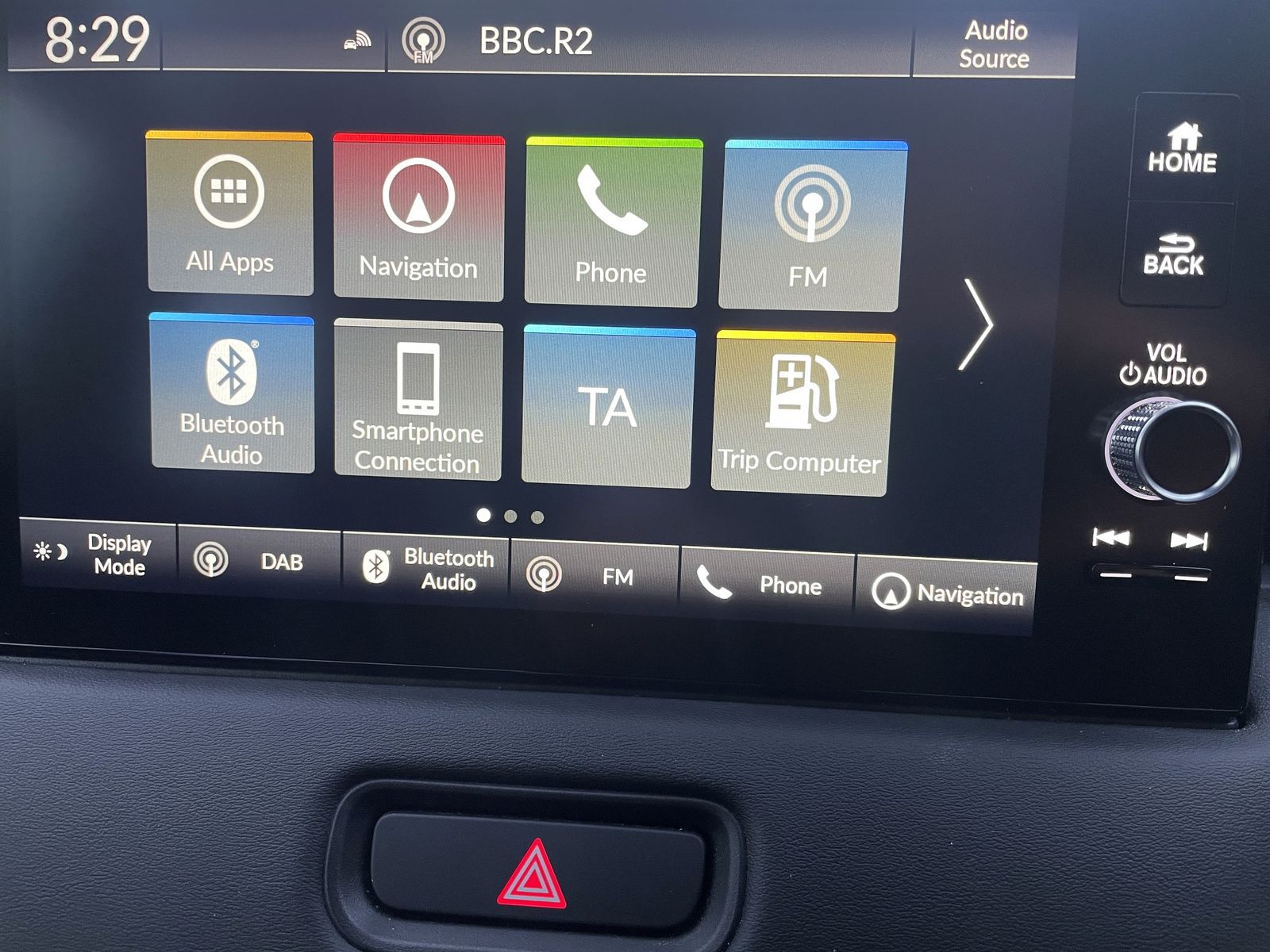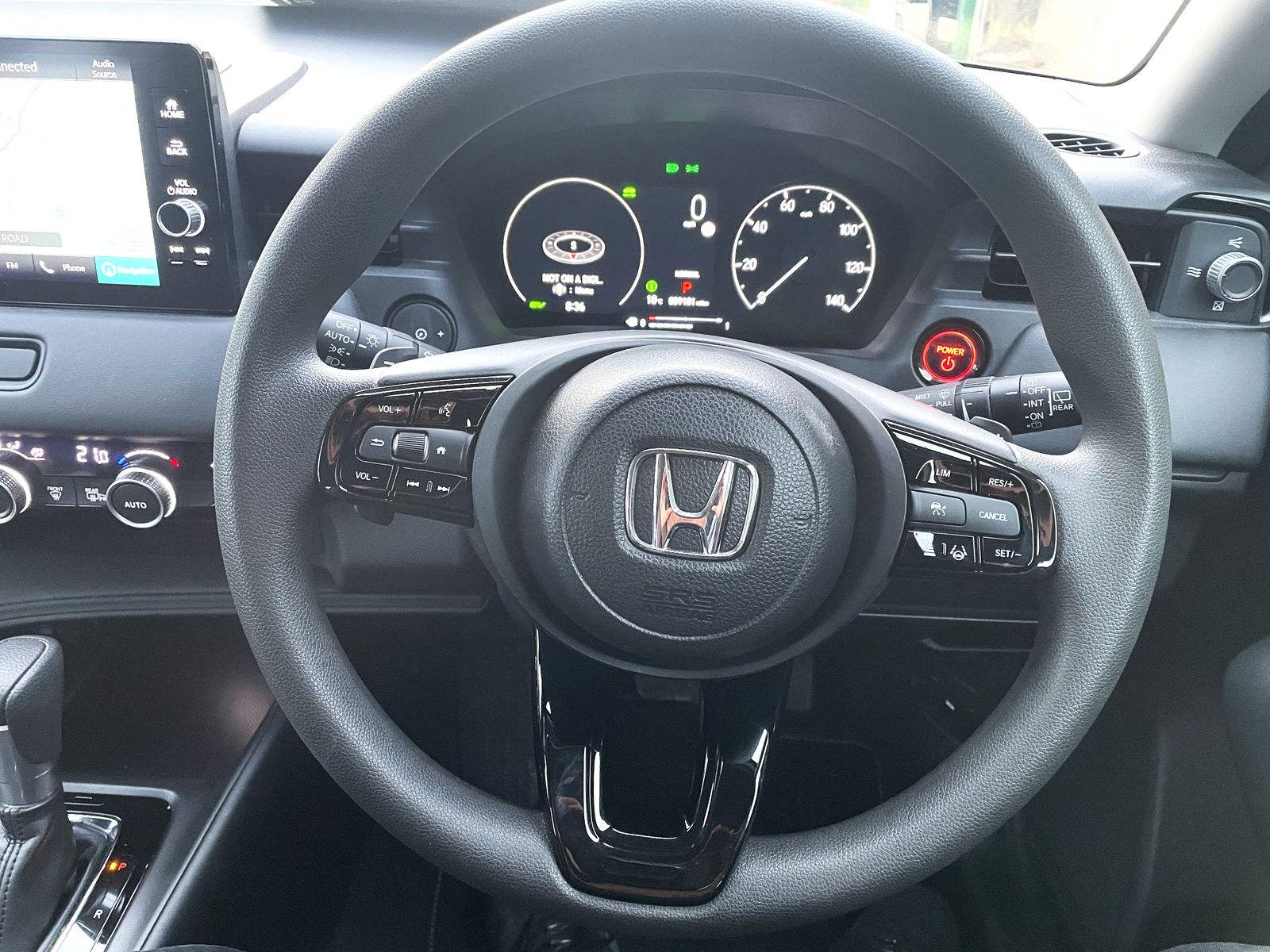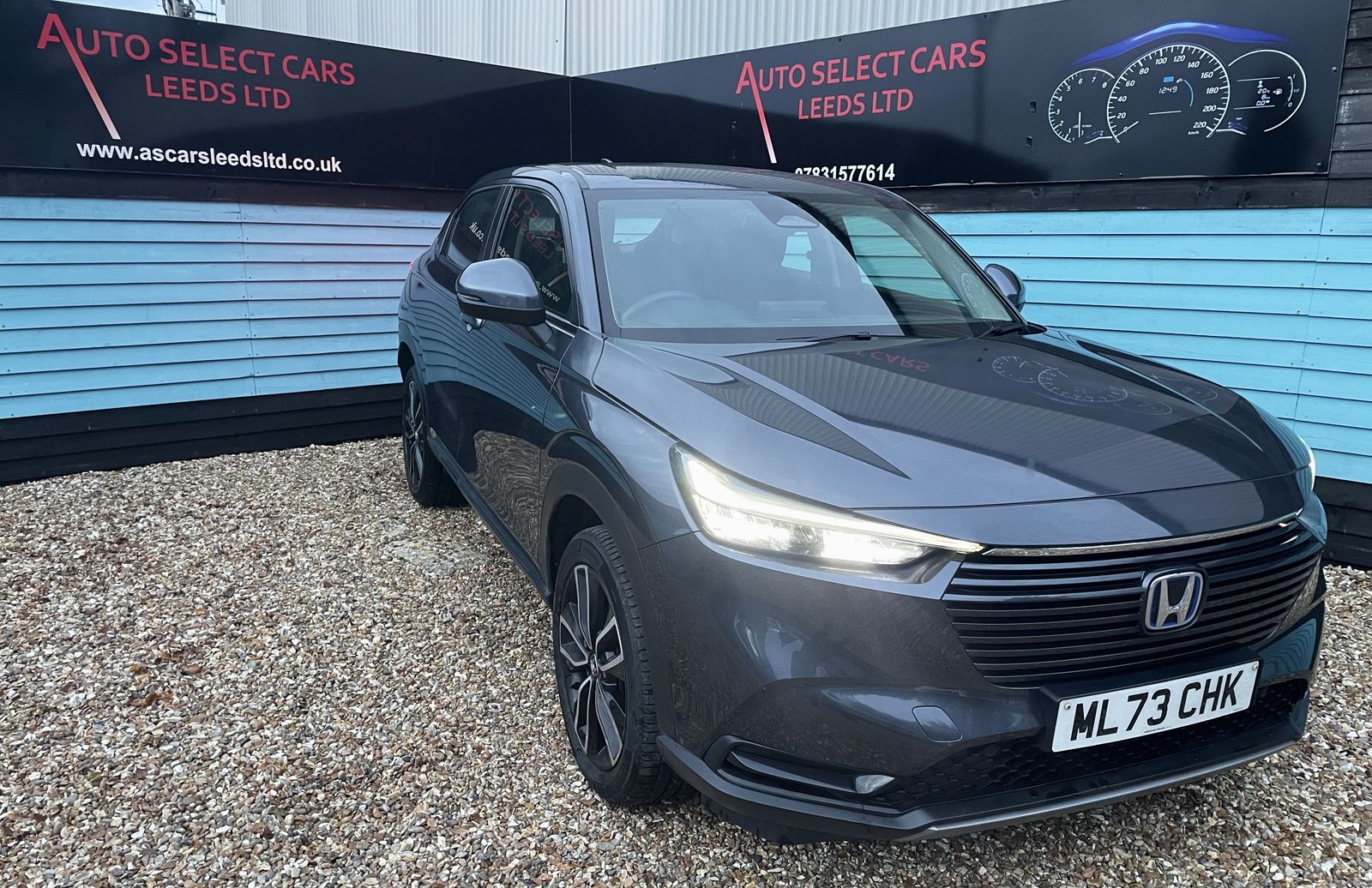 Honda HRV Elegance, I-MMD, 1.5 e;hev, CVT Automatic, 5 door, hybrid petrol electric, 131ps, s/s, EURO 6, in Meteoroid Grey metallic with black cloth magic heated seats, Honda connect with satellite navigation and multi info display, front and rear park distance control with reverse camera, multifunction steering wheel with paddle shift option, on board computer, cruise control with speed limiter and voice recognition blue tooth hands free phone system, 18" black cut alloy wheels on premium matching tyres with locking wheel key, driving mode options from sport, normal, Eco oR EV, Auto Led headlamps with coner assist, high beam assist and LED day time running lamps. ABS, brake assist with collision mitigation braking system, forward collision warning, hill decent control, hill hold handbrake assist, lane keep assist, traffic sign recognition, vehicle stability assist. DAB radio with usb and Apple car play wireless, Auto climate control, electric windows with electric heated power folding wing mirrors, front and rear mats with boot area protection mat. This is a one owner car with full Honda service history last serviced December 2025 and comes with the extended 5 year service plan to 2028 and the remainder of the manufacturers warranty.