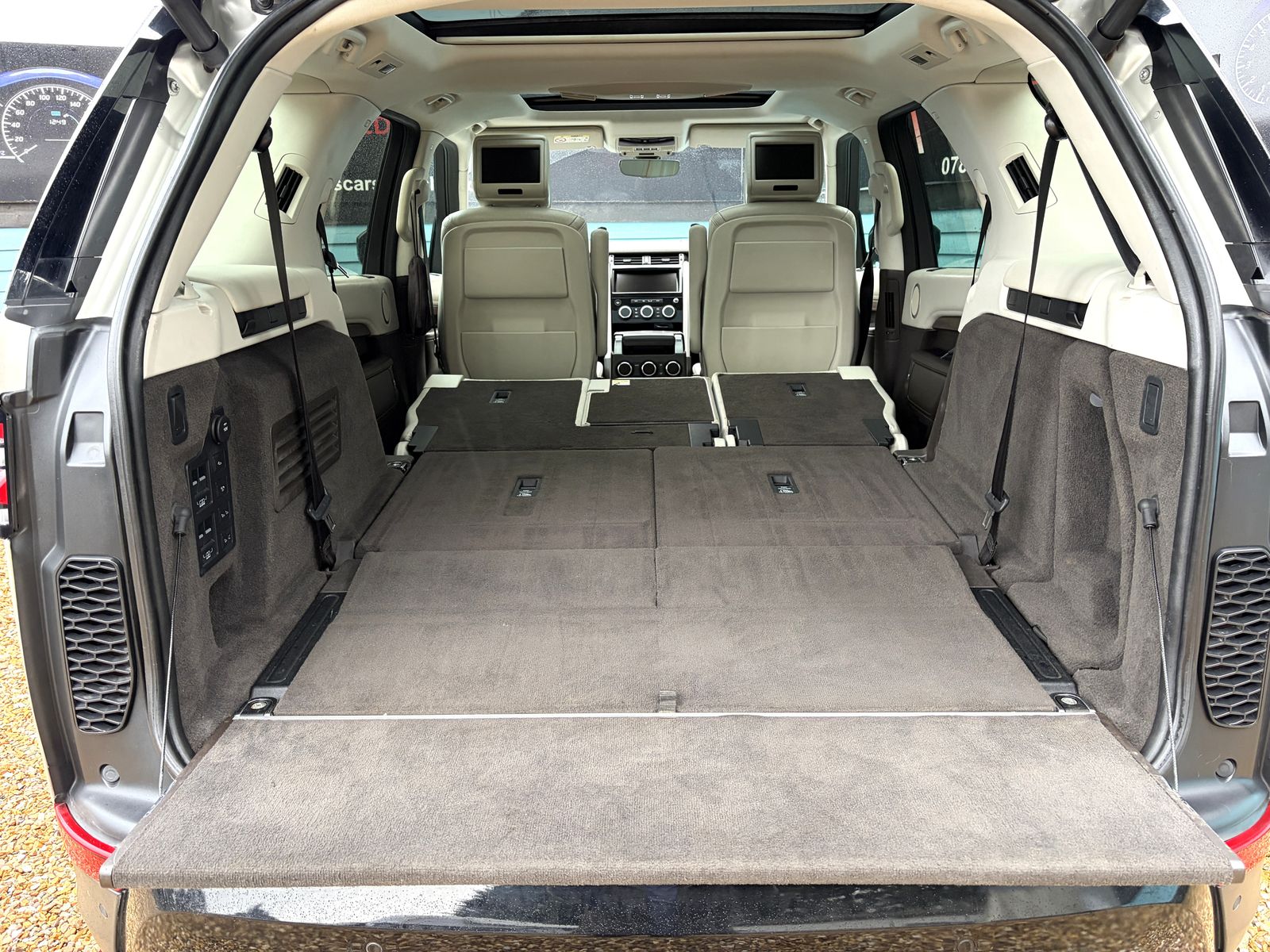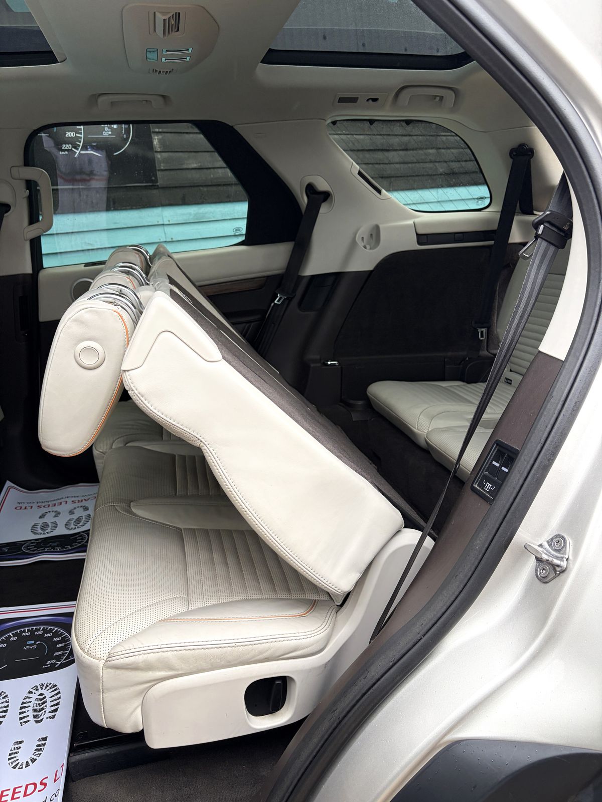 Land Rover Discovery 3.0 TDV6, HSE Luxury, 4wd, diesel, automatic, 7 seats, s/s, Euro 6, in Aruba premium metallic paint £1660, with full ivory heated air cooled electric memory perforated seats, center seats electric power folding and heated seats, rear 7 seats electric power folding, all dash board or button controlled, Piano gloss black interior trim, gloss black roof with twin sun roofs front tilt slide with fixed rear, both with electric sun blinds, gloss black electric power folding mirrors, gloss black front and rear spoilers, extras incude head up display £1035, electric deployable tow bar £985, park assist with parallel parking and park exit £935, front and rear park distance with reverse camera and 360 surround view, climate front and rear seats £520, adaptive LED signature head lamps £490, factory privacy glass £390. full lenth roof rails £315, front center consul cooler compartment £235, home link £235, infared reflective windscreen £210, 21" gloss black alloy wheels on premium matching Pirelli tyres with locking wheel key £890, full size spare wheel, Incontrol touch pro navigation, electric air suspension, Traction control hill hold assist, 4wd with Terrain responce 2, hill decent and wade control, multifunction heated electric leather steering wheel with paddle shift option, cruise control, computer and voice recognition blue tooth hands free phone system, Rear DVD players in head rests with wireless headphones £1295, Dab radio incontrol apps with usb and aux ports with Meridian sound system, forward alert, rear traffic detection, lane keep assist, blind spot monitor, traffic sign recognition with head up windscreen display, driver fatigue alert, factory privacy glass to the rear, electric open close tailgate, Land Rover premium fitted mats to the front and rear, excellent condition inside and out with full service history last serviced 17/03/2026 at 83672 miles, belts all serviced and replaced 2025, Mot to 15/03/2027 with no advisories.