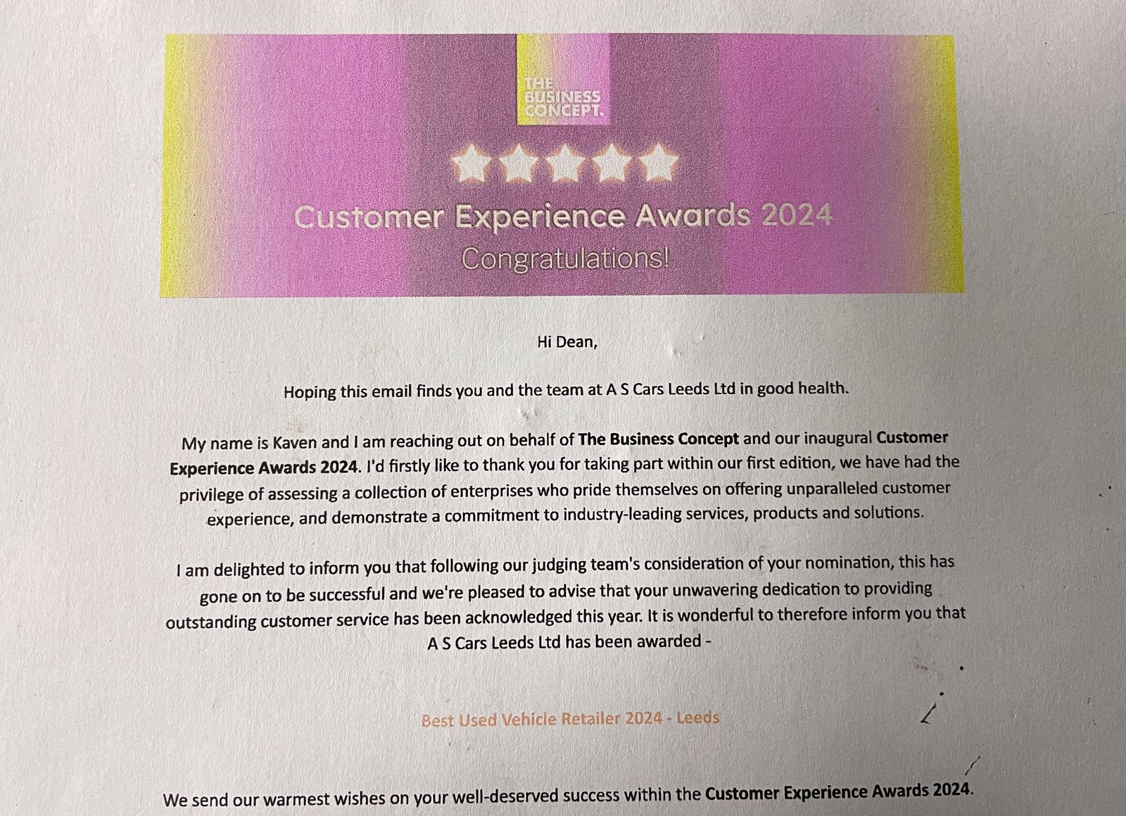 We do not operate an organised distance sales scheme. We have only agreed to sell and deliver the car to you without you viewing the car first as an exception to the company policy in view of the [the fact that you live too far away or are unable to drive the distance or take the time off work.