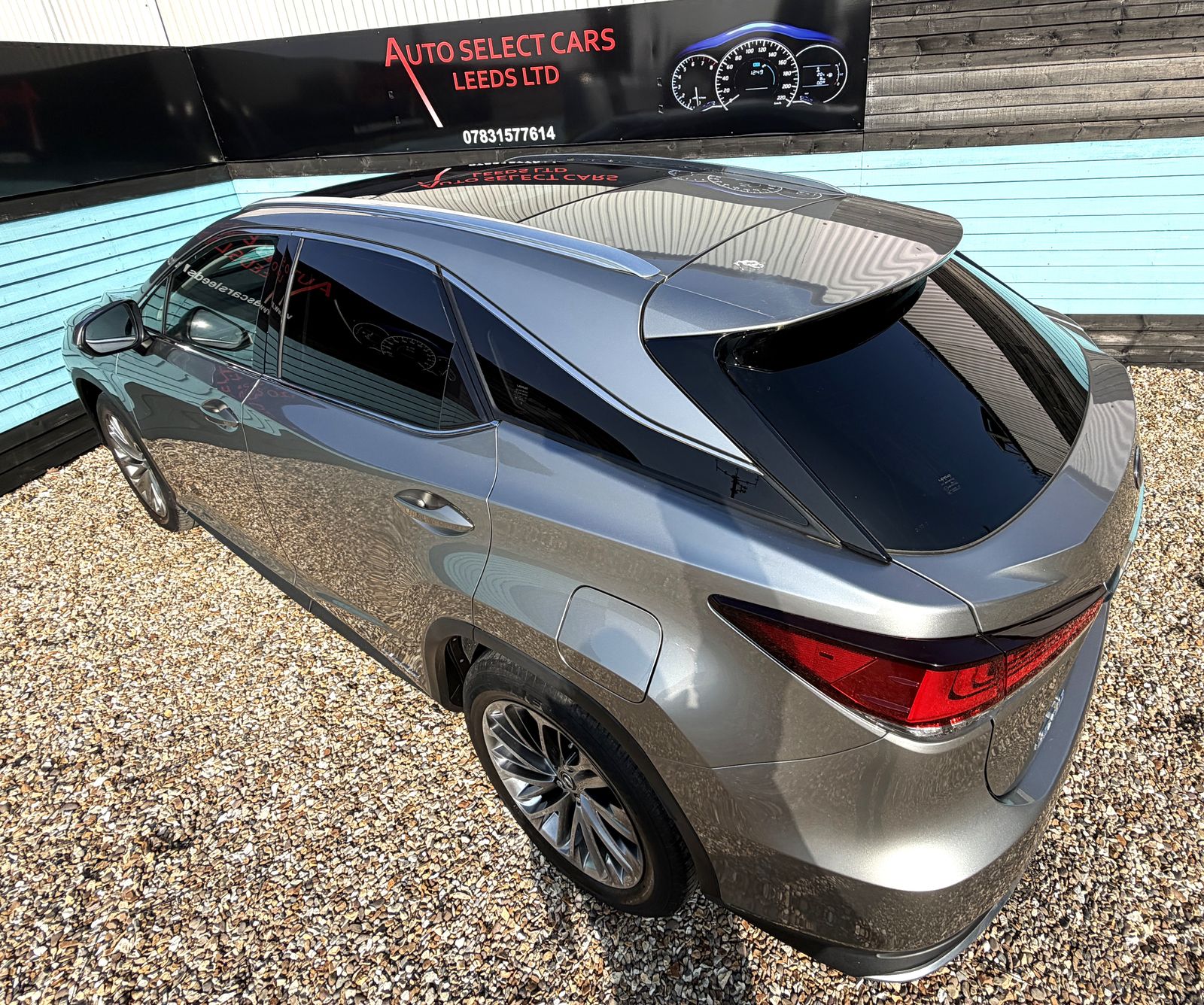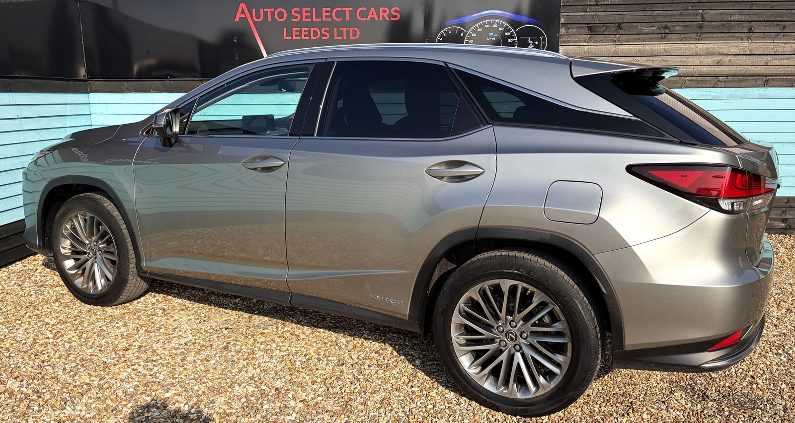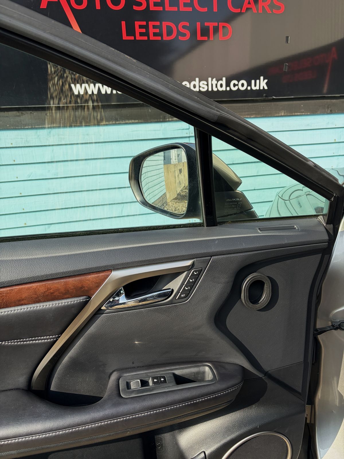 Lexus RX450h V6 Takumi, 3.5cc, E-CVT automatic, 4wd, s/s in Sonic titanium metallic with full black heated air cooled ventilated 14 way electric memory seats, Lexus premium navigation with 12.3" touch scrren display with remote interface, head up windscreen display, front and rear dash camera, electric power folding rear seats, Ghost alarm tracker fitted, front and rear park distance with reverse camera and 360 degree surrond camera, electric tilt and slide panoramic glass sun roof with electric sun blind, Multifunction wood and leather heated electric steering wheel with auto retraction and paddle shift option, cruise control, blue tooth hands free phone system, wireless phone charger, 20" Takumi grade alloys with premium matching tyres and locking wheel key, DAB radio aux usb, Apple car play, Android auto, vtr compatible, with Mark Levinson 15 speaker surround sound system, led head lamps with active high beam assist with blade scan, puddle lamps active cornering lamp with intelligent clearance sonar, day time running lights, 5 driving mode options from Normal, Eco, Sport and sport plus, Adaptive variable suspension, blind spot monitoring with (RCTAB) rear cross traffic alert and auto braking, electric windows with heated electric power folding mirrors with reverse tilt, factory privacy glass to the rear, electric powered open close tailgate with kick sensor. rear side window mesh sun protection nets, Tailored premium Lexus carpet mats with a set of rubber winter mats, There so many other safty and specifications on these that their is too many to list, happy to go through them with you. In my 40 years in the motor trade we constantly get asked which car is the best, well this is it. Demo plus same family only selling due to family illness, in impecable condition with full Lexus service history, last serviced 13/07/2025 at 17881 miles, Mot to march 2027 with no advisories, Lexus warranty continues upto 10 years or 100,000 miles subject to the yearly service.