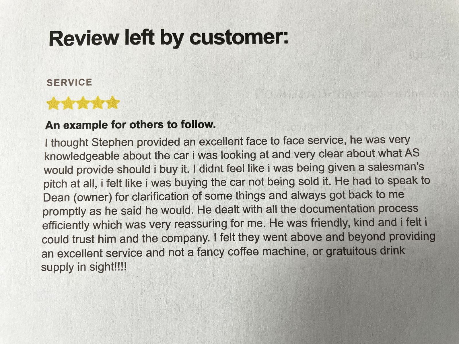 This means that your purchase of the vehicle will not be deemed as a distance sale, and you will not be entitled to the 14 days’ period to cancel the deal.