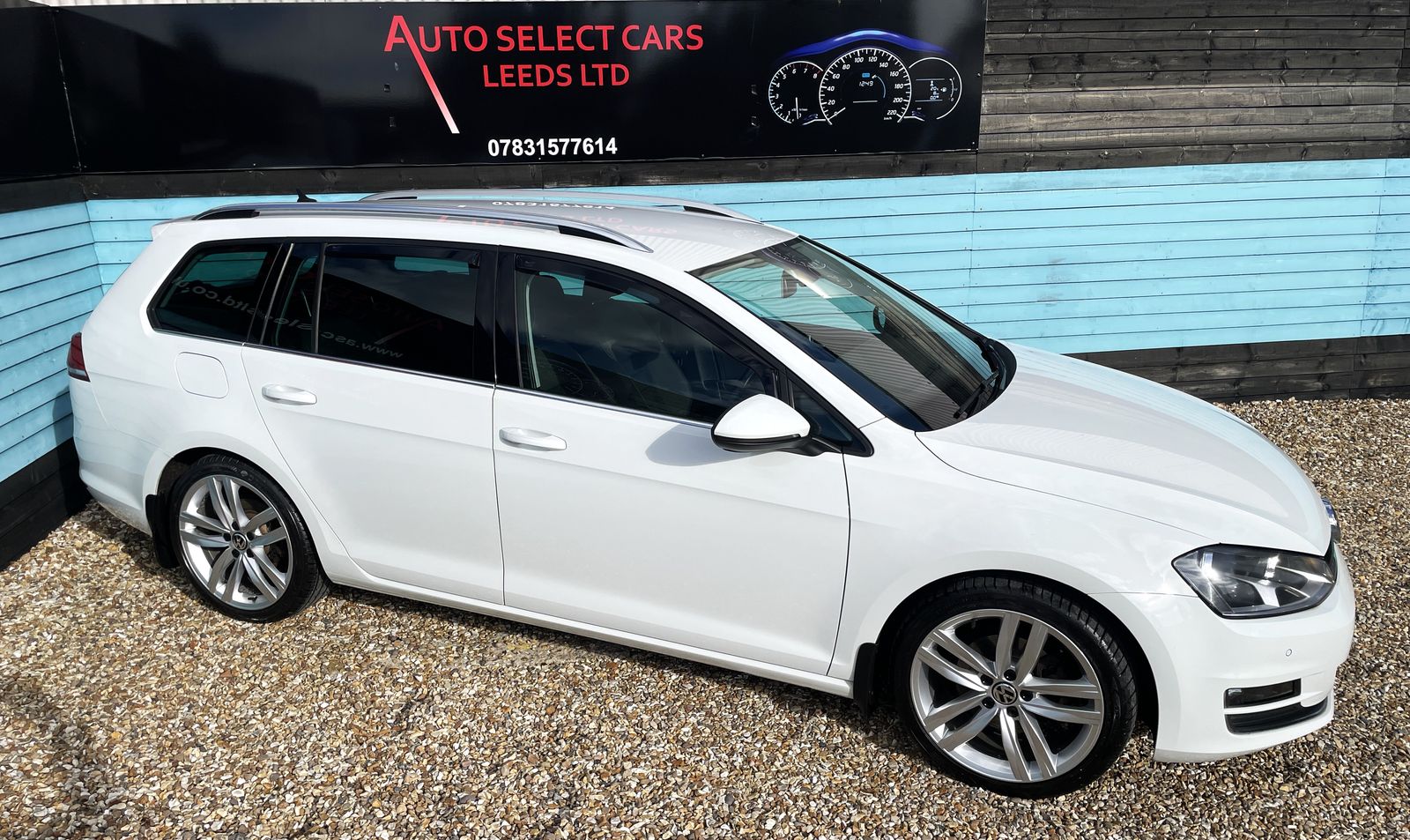 Volkswagen Golf GT 2.0 TDI, blue motion tech, DSG automatic, estate, Euro 6 S/S, 150 ps, in pure white with grey cloth sports seats, discover satellite navigation with colour touch screen, multifunction flat bottom leather steering wheel with paddle shift option, adaptive cruise control, on board computer and blue tooth voice recognition hands free phone system, comfort pack, DAB radio, composition media system multi device interface, MP3, APP connect, usb, front and rear park distance control with pilot assist, automatic gear box with optional driving modes from Eco, Normal, Sport, or Individual. air condioning, electric windows with heated electric power folding mirrors with puddle lamps and reverse kerb view, Auto lights with day time runnung lamps, privacy glass, 18" alloy wheels with locking wheel key, window wind protection trims, ABS, automatic post collision braking system, traffic sign recognition, front and rear mats with rear load area protection mat. full service history last done 24/03/2025 at 72114 miles, toothed belt and water pump done in 2024, Mot to may 2026 with no advisories. and only £35 per yera road fund licence.