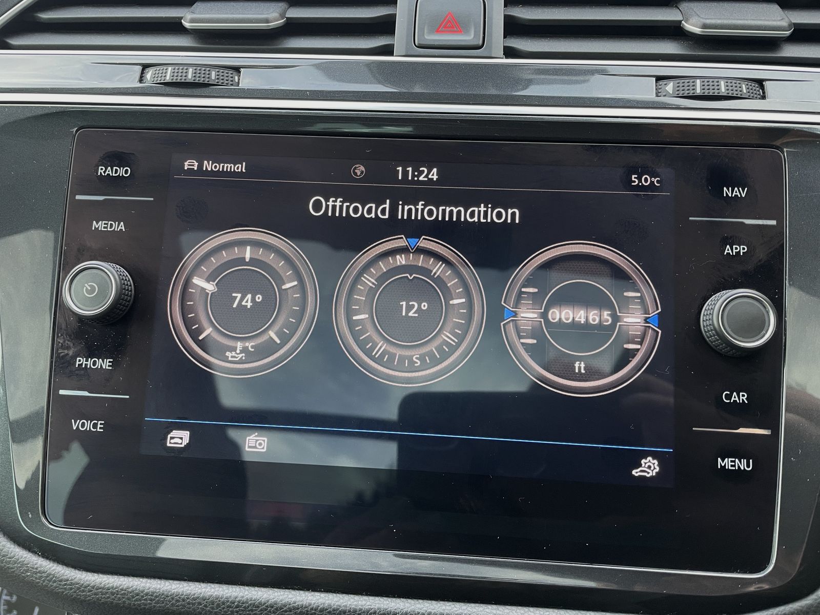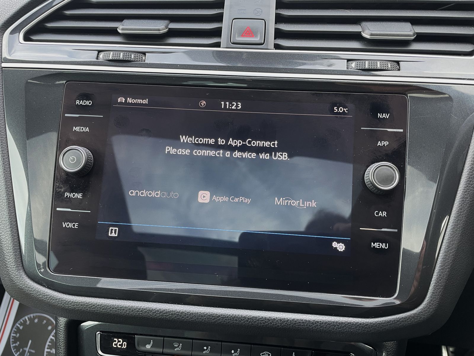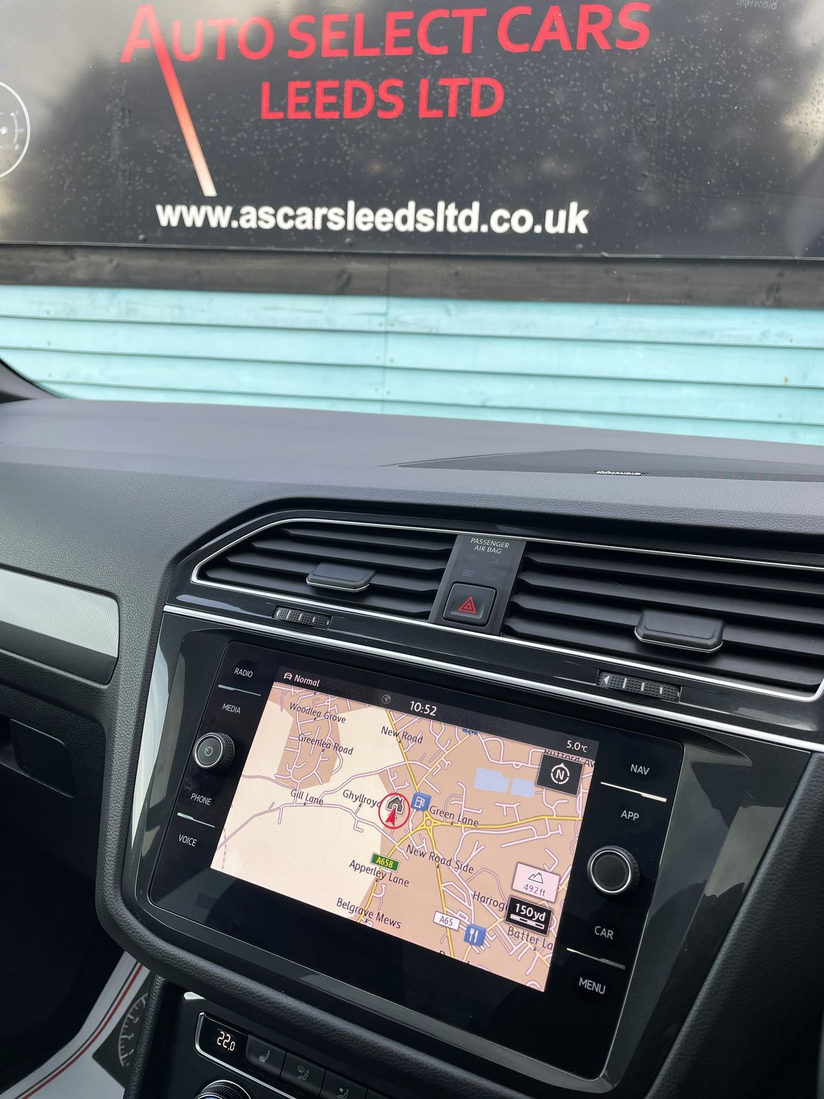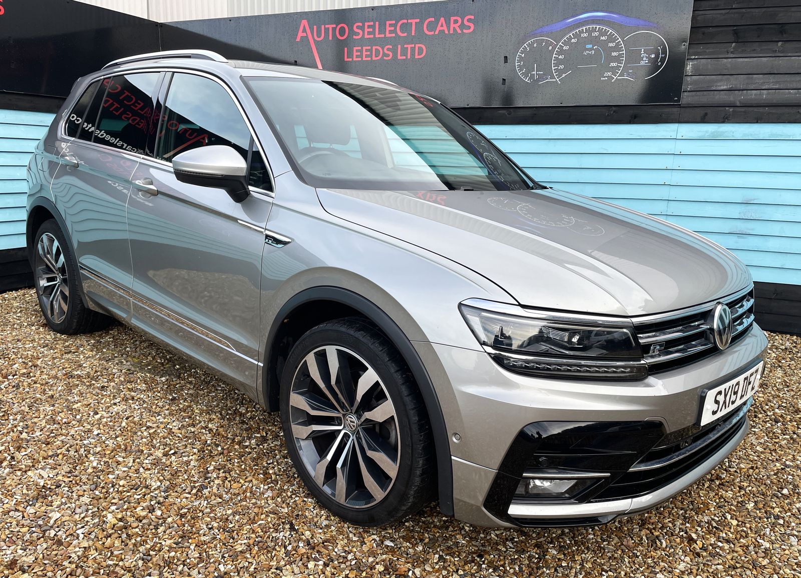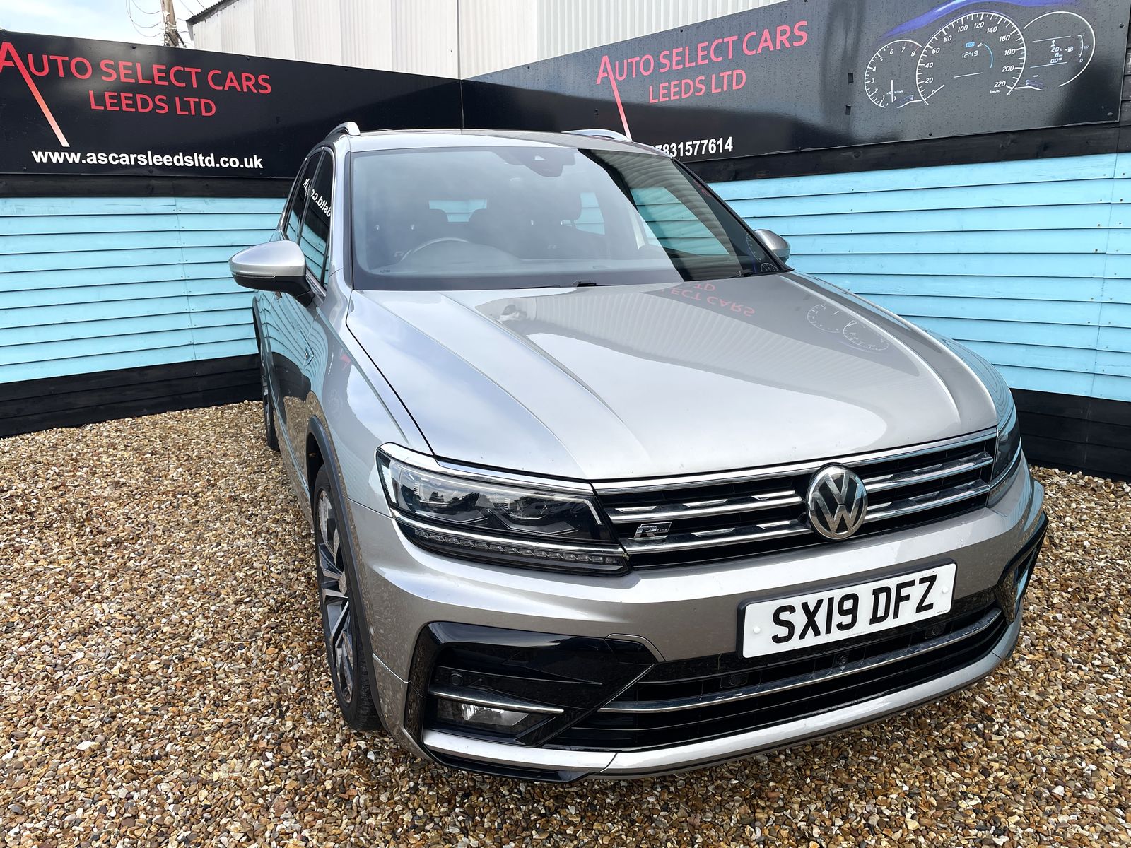 Volkswagen Tiguan R-Line Tech, 2.0 TSI, 4 motion 4wd, automatic, petrol 5 door, s/s, 190ps, euro 6 complient, in Tungsten silver metallic £580, with full black r-line embossed heated electric memory Vienna leather seats, £1505, piano black interior trim, other extras include Led mid headlights £1375, Dynaudio excite soundpack £560, keyless entry £380, e-call security and service plus £340, progresive steering £195, sports plus £165, reverse camera, area view park assist with front and rear sensors £130, panoramic electric tilt and slide glass sunroof with electric sun blind, 20" alloy wheels on premium tyres with locking wheel key, touch screen discover navigation, 4WD 4 motion active control with snow,normal, off road or off road individuel, drive mode options from Eco, normal, sport or individuel, abs, traction control, driver fatigue alert, front radar control, lane assist, electric stability control, tyre presure monitoring system, LED headlamps with dynamic light control, multifunction leather steering wheel with paddle shift option, adaptive cruise control and voice recognition blue tooth hands free phone system, DAB radio with usb and aux ports, Apple and android car play, folding tables to the back of the front seats, sliding rear bench seat with isofix child fixings, ambient interior lighting, climate control, variable boot flooring, electric open close tailgate, electric windows with electric power folding mirrors, factory tinted glass to the rear, fitted mats to the front and rear. Stunning condition inside and out with full dealer service history last serviced 19/12/2025 at 73043, Mot to 03/11/2026 with no advisories as the front tyres where replaced.