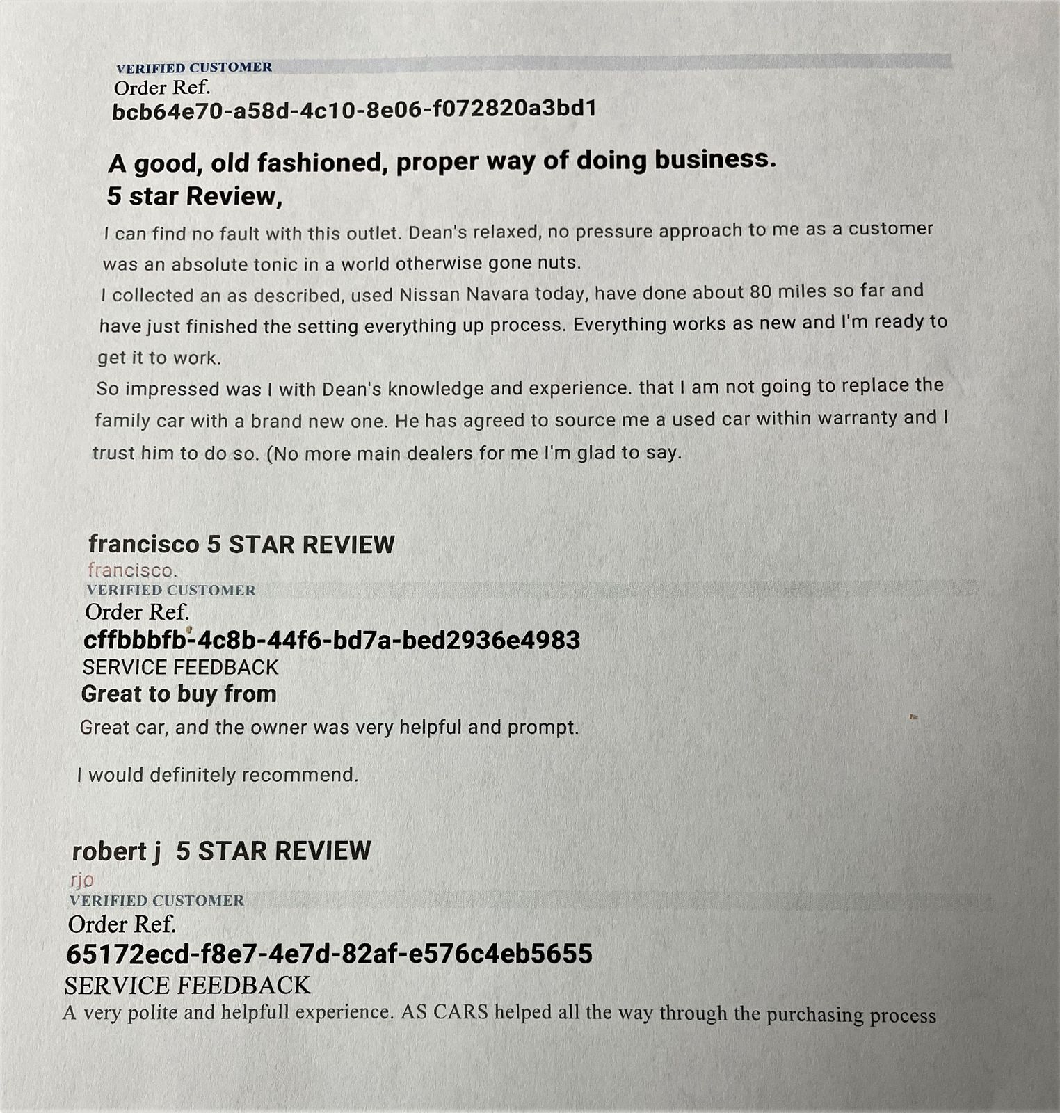 We do not operate an organised distance sales scheme. We have only agreed to sell and deliver the car to you without you viewing the car first as an exception to the company policy in view of the [the fact that you live too far away or are unable to drive the distance or take the time off work.